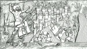 앗시리아의 승전비. 성을 포위하여 공격하고 있다.